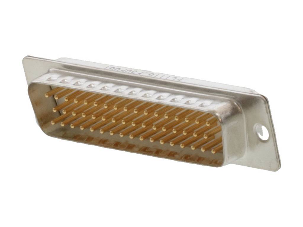 FCT Standard-Density D-Sub Connector, Male, Straight, Solder Cup, Gold Plating, 500 Mating Cycles, 50 Circuits, White Insulator
