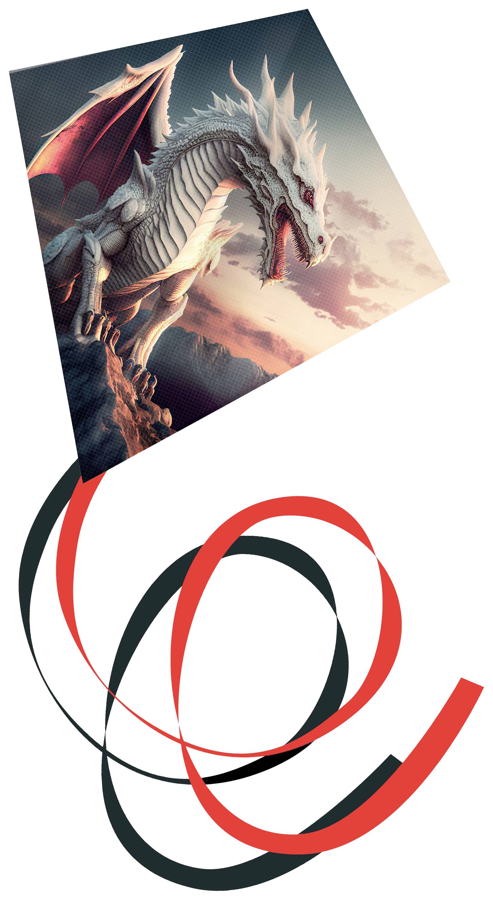 Hochwertiger, mystischer Drachen- Drachen mit anspruchsvollem Design. Diese Drachen sind aus wetterbeständigem Ripstop-Polyester und Fiberglasgestänge. Einfach zu montieren und zu fliegen.