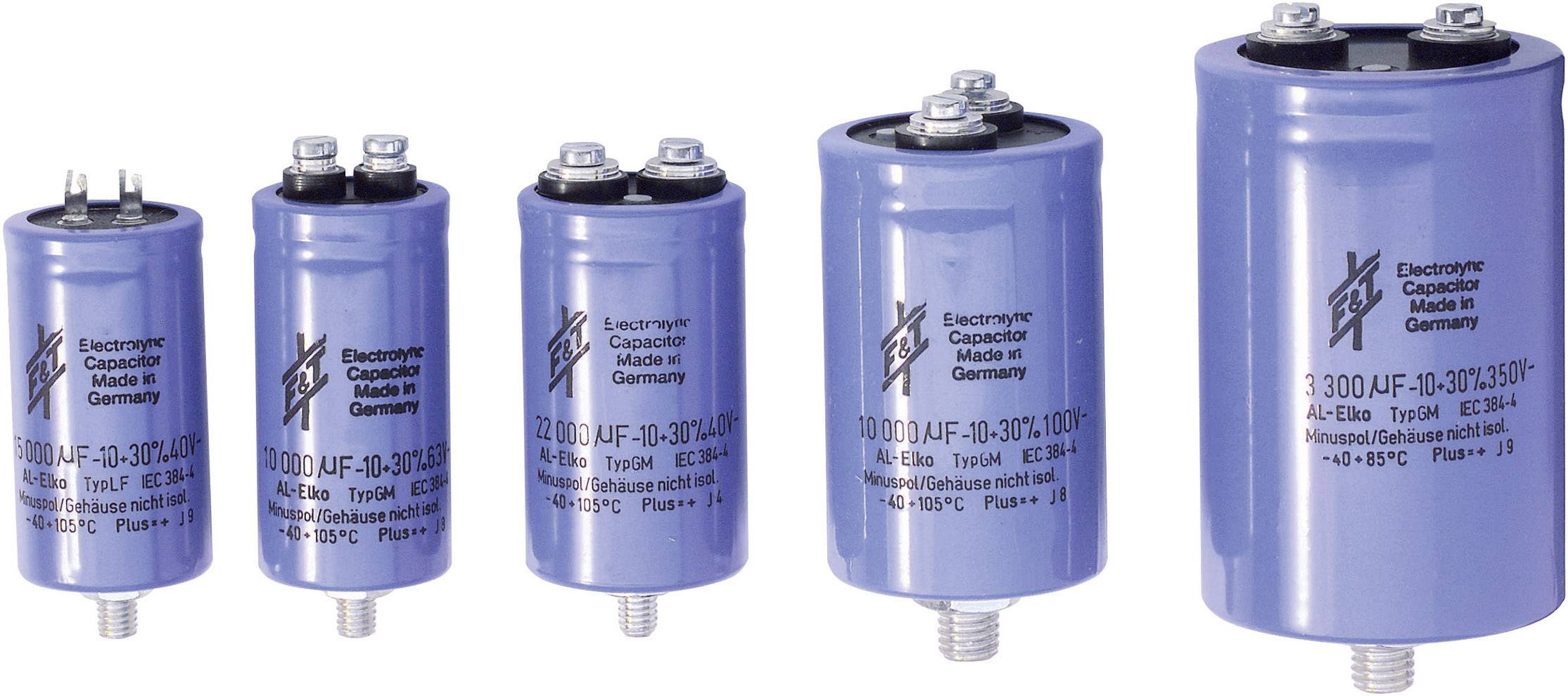 Diese Kondensatoren bieten hohe Ströme bei kleinen Abmessungen. Lange Brauchbarkeitsdauer, mit Gewindeanschlüssen und Bolzenbefestigung.