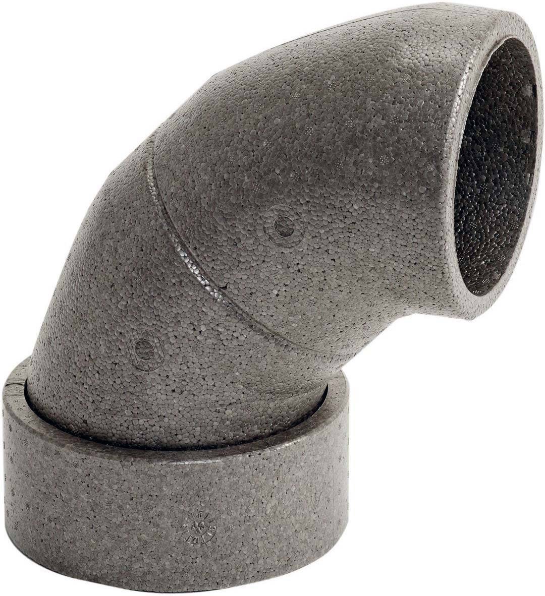 EPP Bogen Durchmesser 180/150 mm 90 Grad mit integrierter Verbindungsmuffe, teilbar auf 2 x 45 Grad, Farbe grau