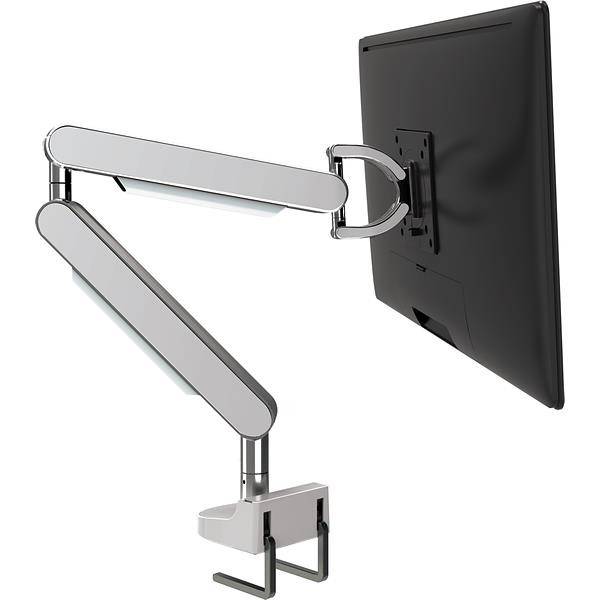 ZG1 Monitorarm chrom glänzend mit weißen Blenden mit Haltewinkeln, verpackt im Karton.