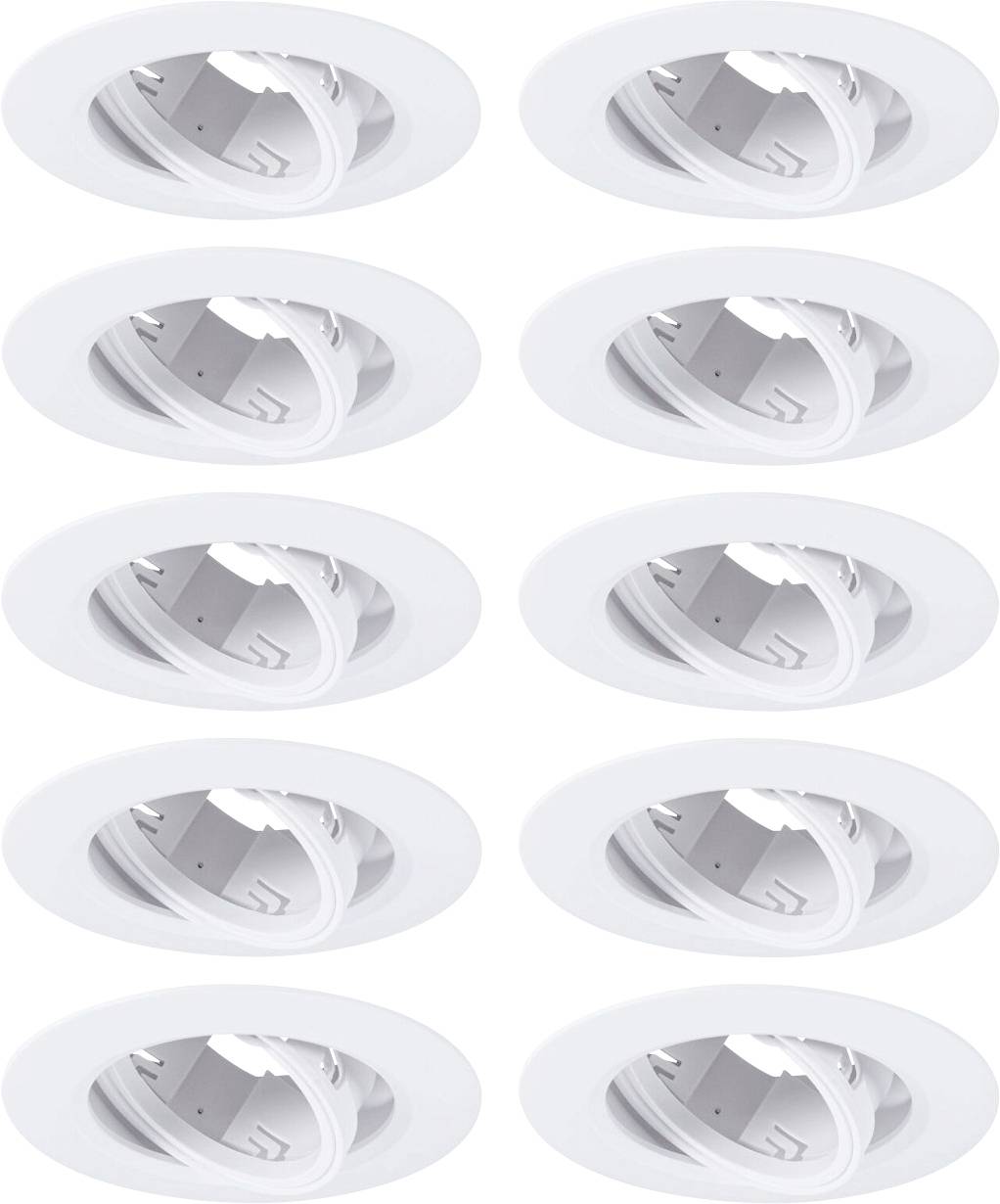 Die schwenkbaren Einbauleuchtenringe im 10er-Pack in Weiß aus Kunststoff sind eine ideale Lösung für eine flexible Beleuchtung. Der unauffällige Sprengring passt perfekt zur Leuchte und sorgt für eine harmonische Optik. Passend für Leuchtmittel mit 50mm Durchmesser, bsw. GU10 oder Paulmann LED-Coins.