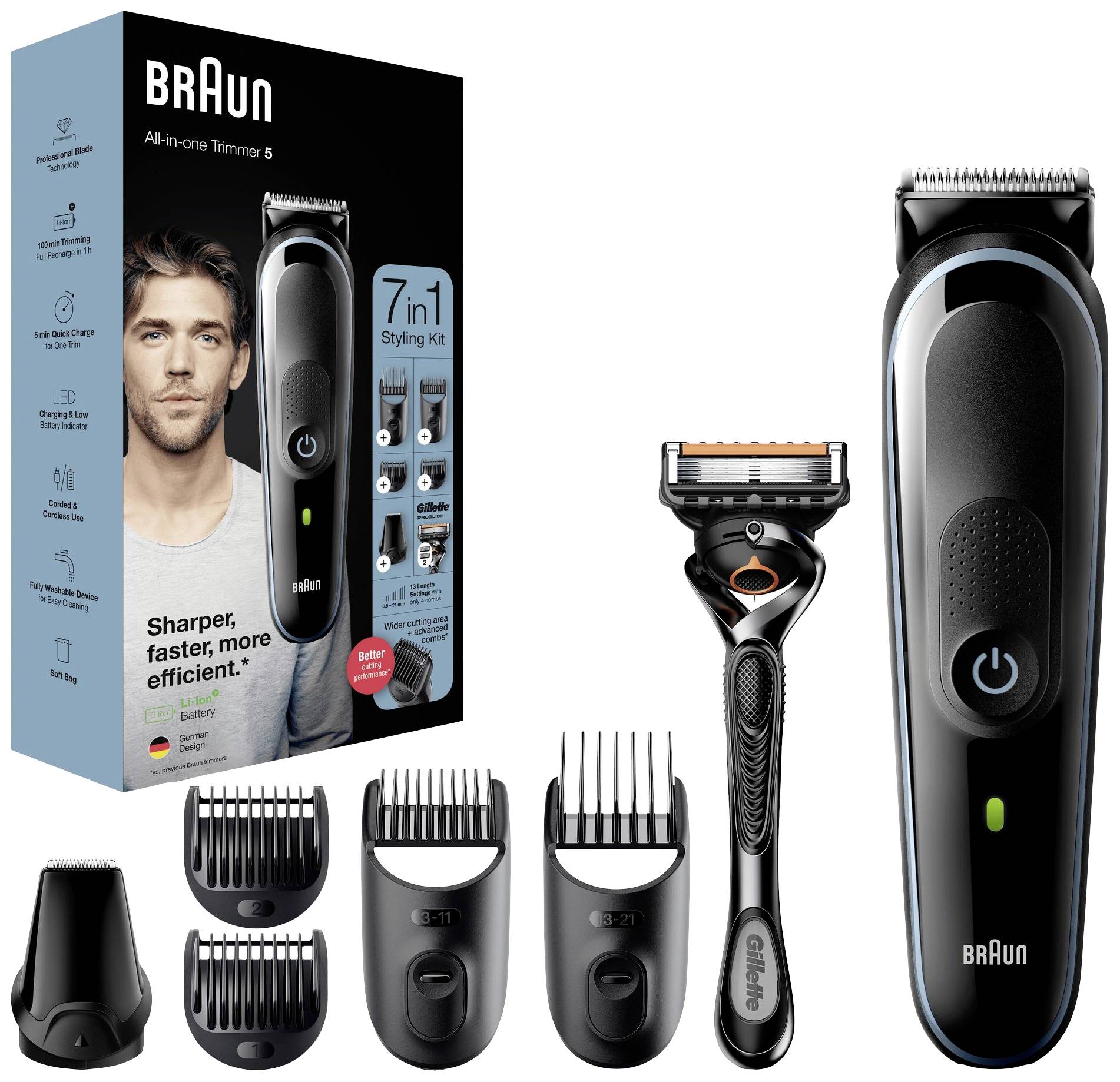Körperpflege von Kopf bis Fuß mit dem Braun All-In-One Styling Set. 8-in-1-Körperpflege Set für Barthaar, Kopfhaar und Bodygrooming. Das Bartpflege und Bodygroomer Set für Herren bietet Barttrimmer, Haarschneider, Haarschneidemaschine in einem und ist als Geschenk für den Mann ideal geeignet. Mit ultrascharfen Klingen und 100 Minuten Laufzeit.