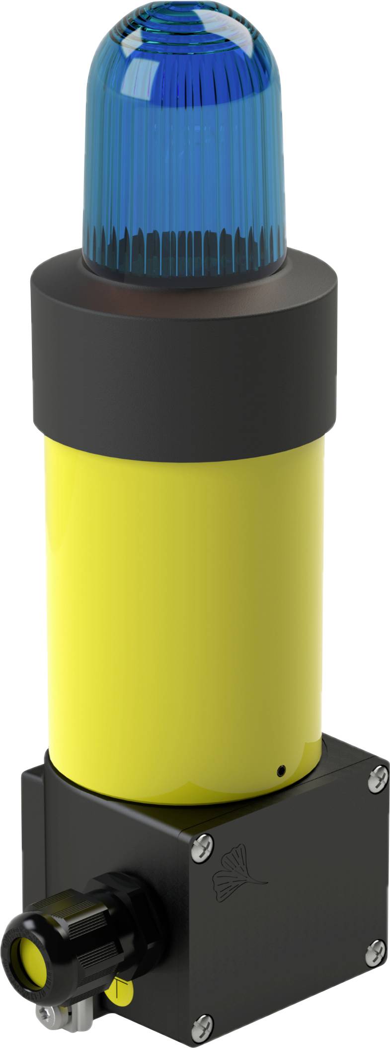 Explosionsgeschütze Blitzleuchte mit blauer Haube zur optischen Gefahrenmeldung in explosionsgefährdeten Arbeitsstätten der Zonen 1, 2, 21 und 22 (gemäß 94/9EG)