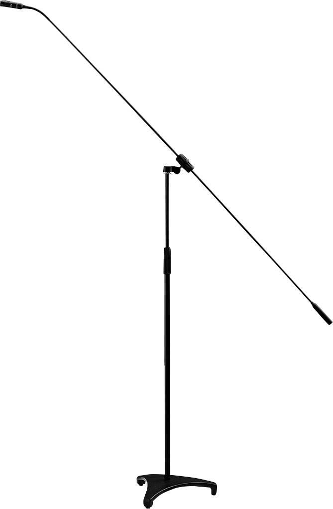 Hochwertige Kondensator-Mikrofonkapsel mit extrem dünner, goldbeschichteter 1,25-cm-Membran (½"), Nierencharakteristik und hervorragenden Klangeigenschaften Low-Cut-Schalter (80 Hz) Schaltbare 10-dB-Abschwächung Extrem leichter (105 g) und dabei äußerst stabiler Carbonfaser-Galgen (1,46 m) mit Miniatur-Schwanenhals Langes Stativ-Unterteil, für Overhead-Mikrofonierung Körperschallentkoppelte Druckguss-Bodenplatte Kapseleinheit und Kapsel austauschbar (Stecksystem mit Schraubverriegelung) Inklusive Windschutz Die Lieferung besteht aus 2 Kartons