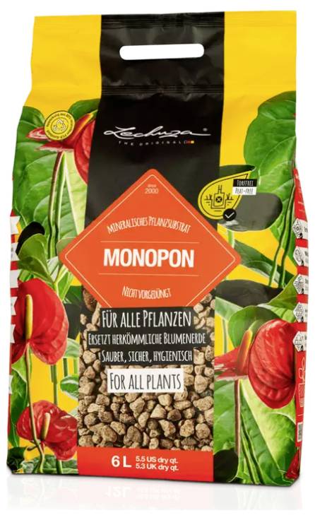 Für alle Pflanzen geeignet ! Mit MONOPON kann Staunässe und Wurzelfäule optimal vorgebeugt werden. Das rein mineralische Substrat ist für alle Pflanzen geeignet und ersetzt Pflanzenerde gänzlich. Dank der besonders hohen Drainagefähigkeit ist es die ideale Drainageschicht für Pflanzgefäße ohne LECHUZA-Bewässerungssystem, da es Wasser optimal abfließen lässt. Auch kann es Pflanzenerde zur Auflockerung beigemischt werden oder als nachhaltige Alternative für Blähton dienen.