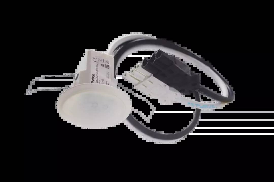 Präsenzmelder (PIR), mit Kabel und Wieland Steckern, Erfassungsbereich 8 m, 1 x Licht, Kabellänge 0,9 m, Erfassungsbereich rund, automatische helligkeitsabhängige Steuerung für Beleuchtung, Mischlichtmessung, Ausschaltverzögerung einstellbar, Empfindlichkeit einstellbar, Werte voreingestellt (fernparametrierbar)