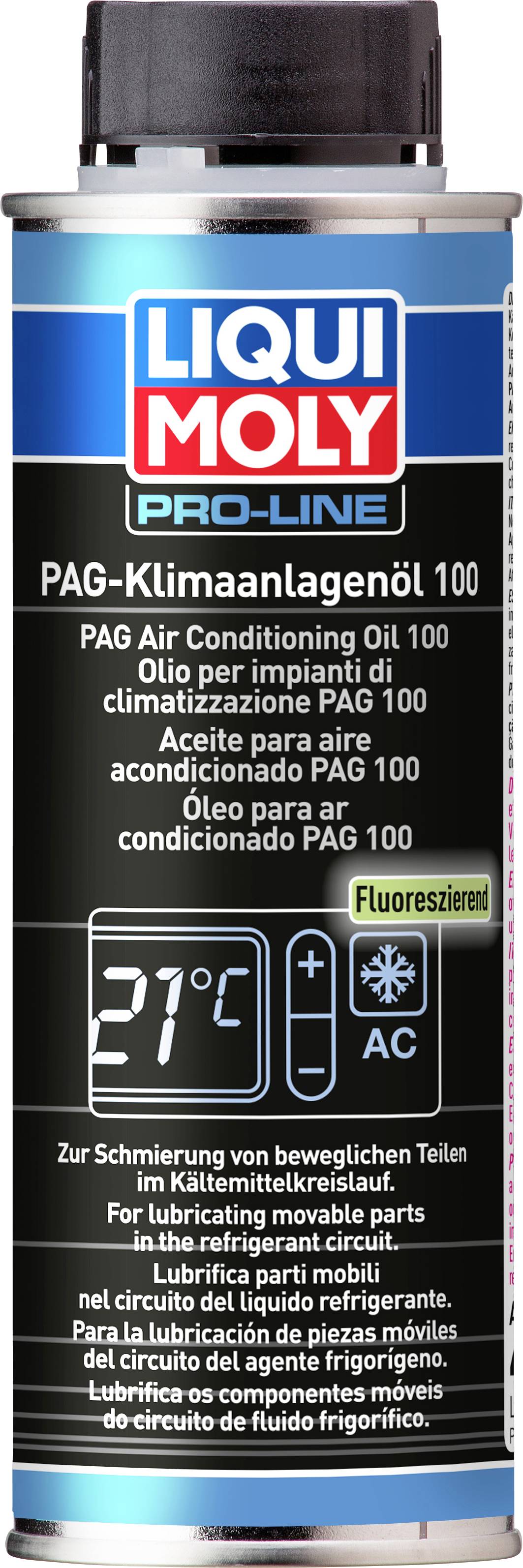 Fluoreszierendes, vollsynthetisches Klimaanlagenöl auf Basis von Polyalkylenglykol. Ist mit R134a gut verträglich und mischbar. Nicht für Kältemittelkreisläufe geeignet, die mit dem Kältemittel R1234yf befüllt sind und nicht für Hybrid- und Elektrofahrzeuge mit elektrisch angetriebenen Kompressoren. Erfüllt die Anforderungen maßgeblicher Kältekompressorenhersteller. Entspricht der ISO VG Klasse 100 gemäß DIN 51519.