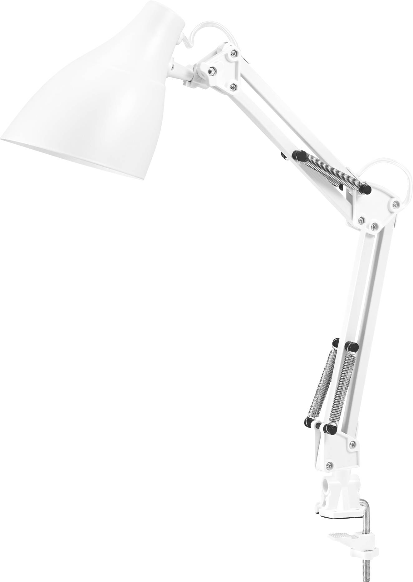 Schreibtischleuchte mit E27-Sockel und Cliphalterung. Produkteigenschaften: Schreibtischleuchte in klassischem Design und mit E27-Sockel. Produktvorteile: Höchstflexibel durch zwei Gelenke. Nachhaltige Lösung dank austauschbarer Lichtquellen. An/Aus Schalter am Kabel. Klemmmechanismus, um die Leuchte einfach an verschiedensten Möbelstücken zu befestigen. Schwenkbarer Leuchtenkopf für freie Ausrichtung der Lichtquelle. Anwendungsgebiete: Wohnräume. Tische, Schreibtische. Heimarbeitsplätze. Technische Ausstattung: 1,5 m Anschlusskabel und Stecker enthalten. Sicherheitshinweise: Um die Gefahr einer Strangulierung zu verringern, muss die an der Leuchte angeschlossene flexible Zuleitung, sofern sich diese in Armreichweite befindet, direkt und fest an der Wand montiert werden..