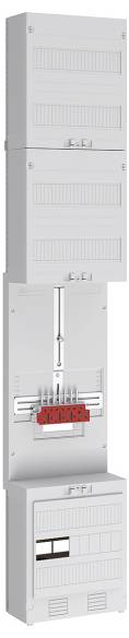 Zählerplatz bestehend aus: 1x 3-Punkt-Befestigung mit Verteilerplatz mit 25 mm², 5-poliger Hauptleitungsabzweigklemme, kein Zählerreserveplatz, NAR mit Sammelschienensystem 5-polig, landesspezifische Ausführung für Luxemburg