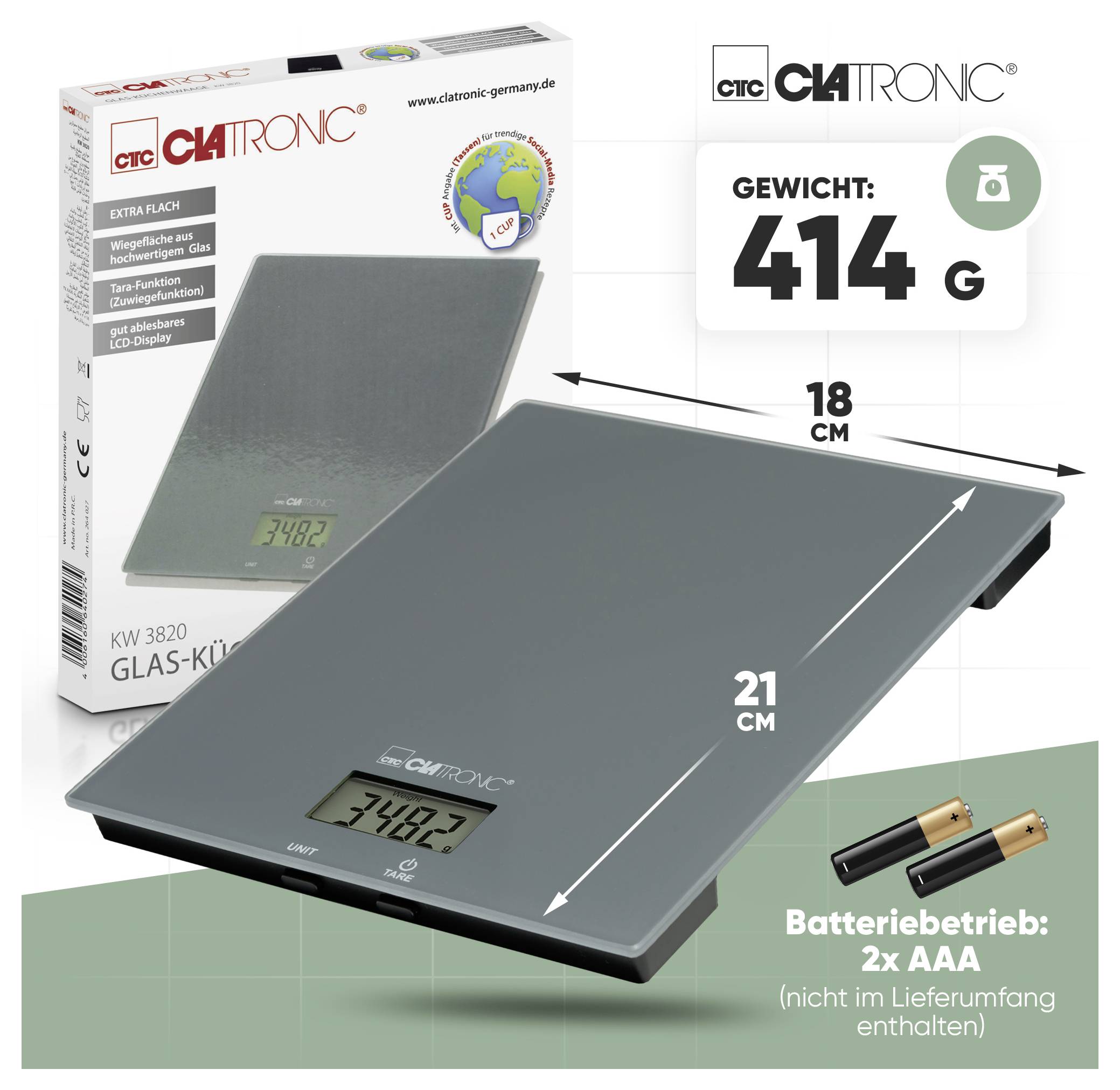 Clatronic KW 3820 Glas grau Küchenwaage digital digital Wägebereich (max.)=5000g Grau 210 x 180 x 20