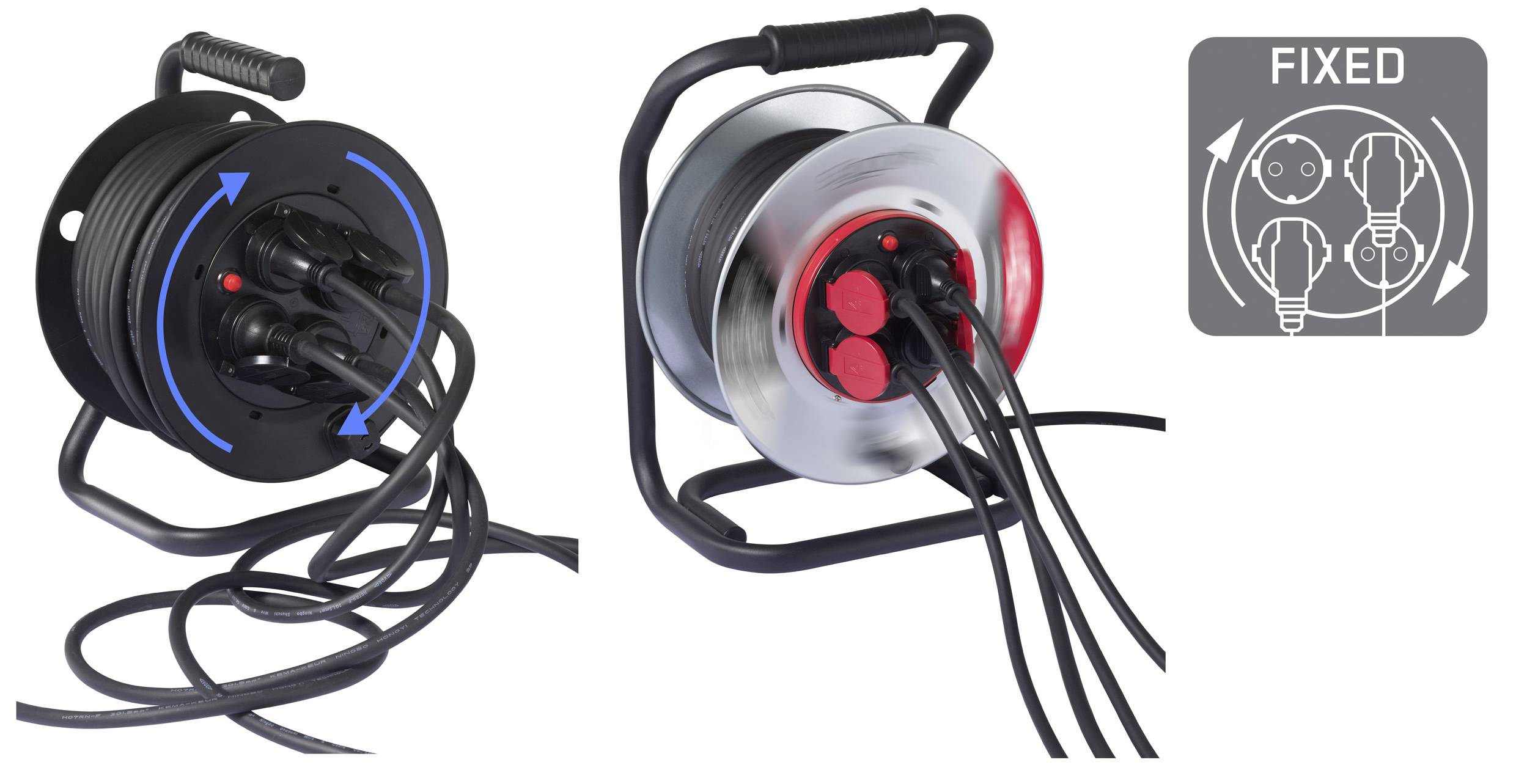 Durch die mittige Fixierung lassen sich die Kabel ohne Abklemmen der angeschlossenen Geräte auf- und abwickeln