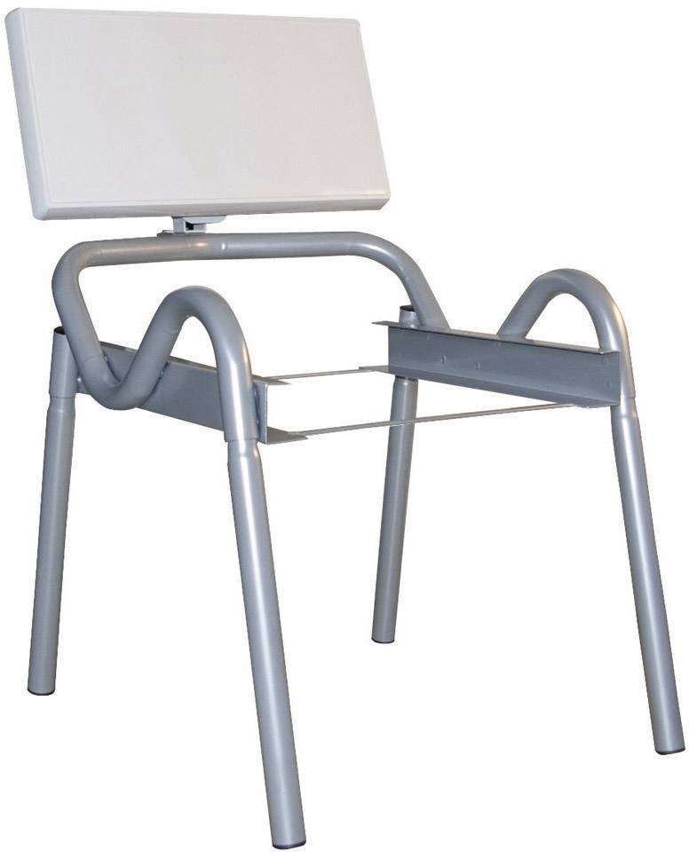 Empfang von digitalen Sat- und Radioprogrammen · Empfangsleistung (Gain) 33,7 dB bei 12,75 GHz · Temperaturbeständig von -30 °C bis +60 °C · LNB Empfangsfrequenz 10,7 - 12,75 GHz · Oszillatorfrequenz 9,75 / 10,6 GHz · Standfläche 65 x 60 cm · Gewicht 8,5 kg ohne Betonplatte · Material: pulkverbeschichteter Stahl · Betonplatte 50 x 50 cm (Nicht im Lieferumfang) · Ein Stuhlbein mit Niveauausgleich · Sitzen ist möglich, jedoch ohne anlehnen · Keine optische Beeinträchtigung von Fassaden · Montage ohne Veränderung der Bausubstanz · Bohr- und schraubfreier Aufbau · Dank höhenverstellbarem Fuß auch auf unebenem Untergrund einsetzbar.