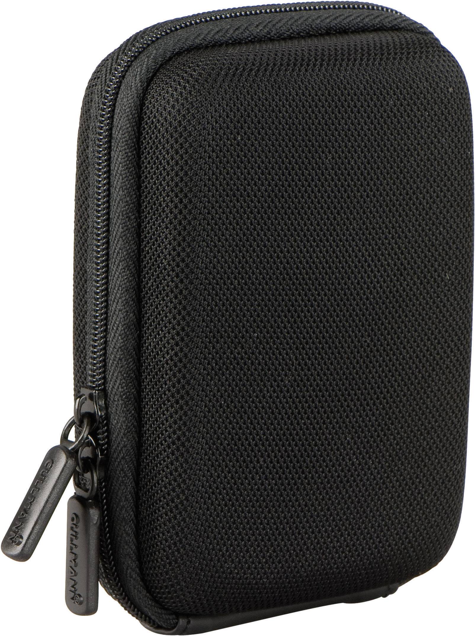 Robuste Hartschale · Stark gepolstertes Innenfutter · Ideal für Kompaktkameras, Mobiltelefone, MP3-Player, externe Festplatten etc. · Besonders weiches Innenmaterial zum Schutz der empfindlichen Display-Oberflächen · Zweifache Gürtelschlaufen-Befestigungssystem · Längenverstellbares Umhängeband mit Karabinerhaken · Praktisches Innenfach für Speicherkarten.