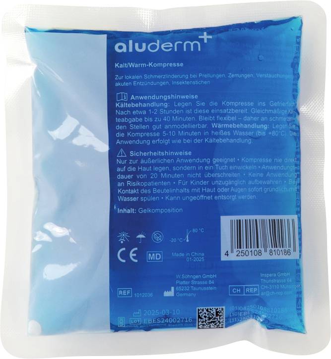 Thermo Kalt/Warm-Kompresse. Dauerkompresse, gut anmodellierbar, bis -30°C flexibel. Im Gefrierfach vorkühlen, im Wasserbad (bis +60°C) vorheizen.