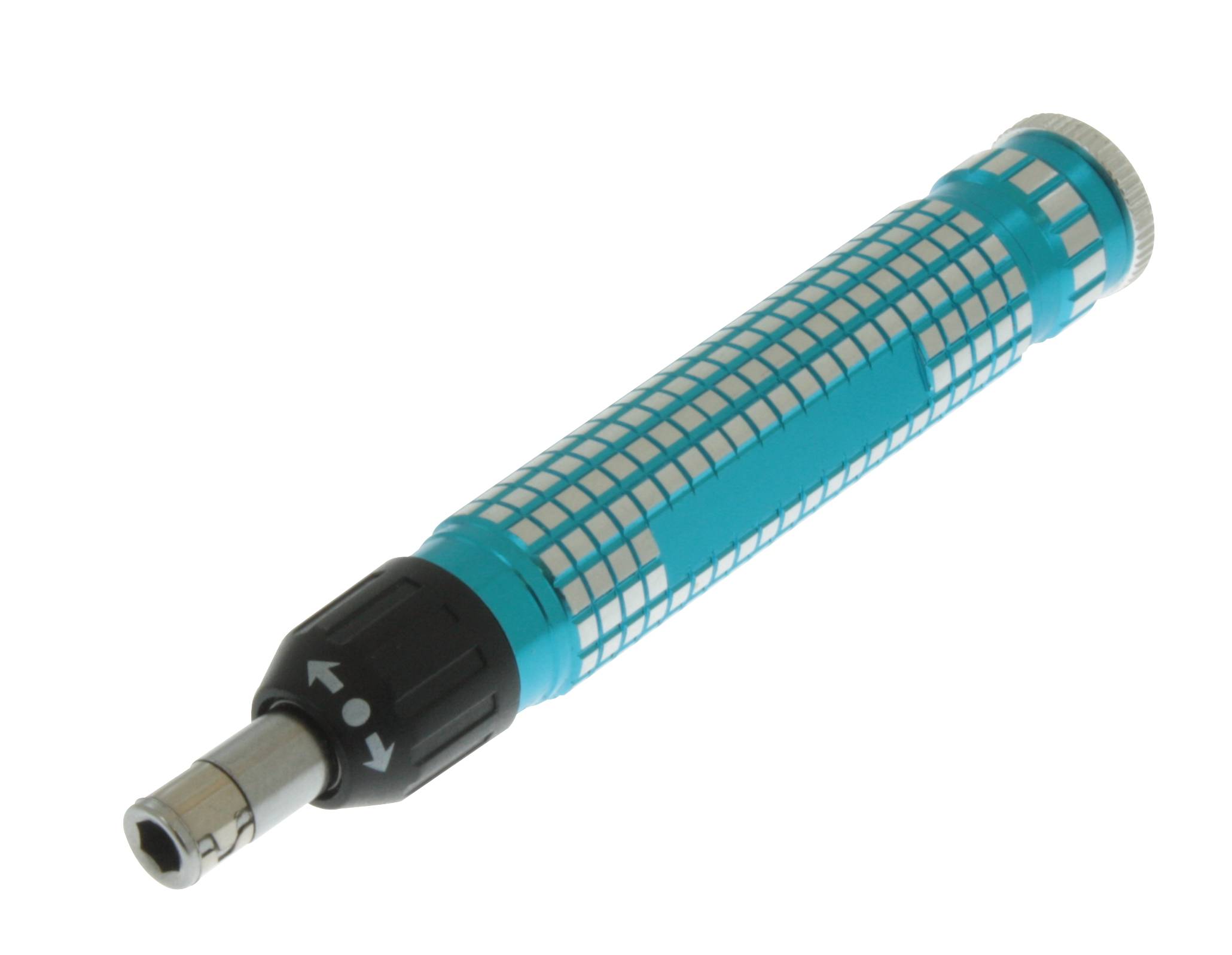 Aluminium Schraubendreher Griff mit Rechts- / Linkslauf verstellbar und Mittelstellung feststellbar. Passend für alle 4 mm Mini Bits. Mit stufenloser, leichtgängiger Ratschenfunktion. Länge Griff ca. 105 mm.