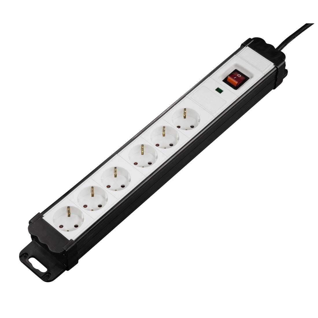 Mit Überspannungsschutz und Funktionskontrollanzeige. Mit beleuchtetem Ein-/Ausschalter. Mit Kindersicherung. Steckdosen um 45° gedreht. TÜV-/GS-geprüft. Technische Eigenschaften:. Anschluss: 6-fach. Aderanzahl: 3. Funktion 1: Standard. Funktion 2: Schalter. Funktion 3: Überspannungsschutz. Material: Kunststoff. Adernquerschnitt: 1,5 mm². Kabellänge: 2 m. Betriebsspannung: 230 V. Max. Anschlussleistung: 3680 W. Farbe: Weiß/Schwarz