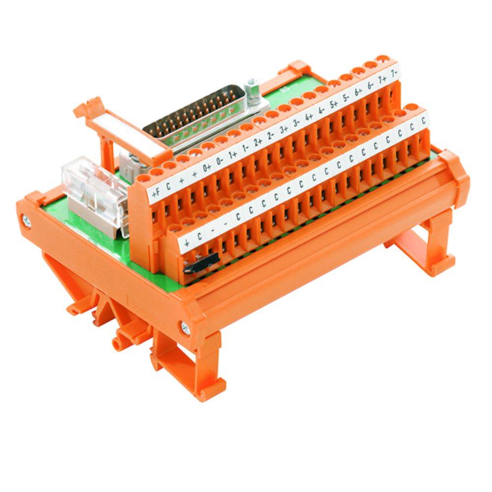 Übergabeelement. Schnittstelle, RS, 2-Draht, Zugfederanschluss. Die Analogschnittstellen werden mit SubD Steckverbindern ausgestattet und bieten somit eine hinreichende für die analoge Signalübertragung erforderliche Abschirmung. Zudem sind sie mit sehr nützlichen Trennern und Prüfbuchsen für die Messung von Spannung oder Strom ausgestattet.