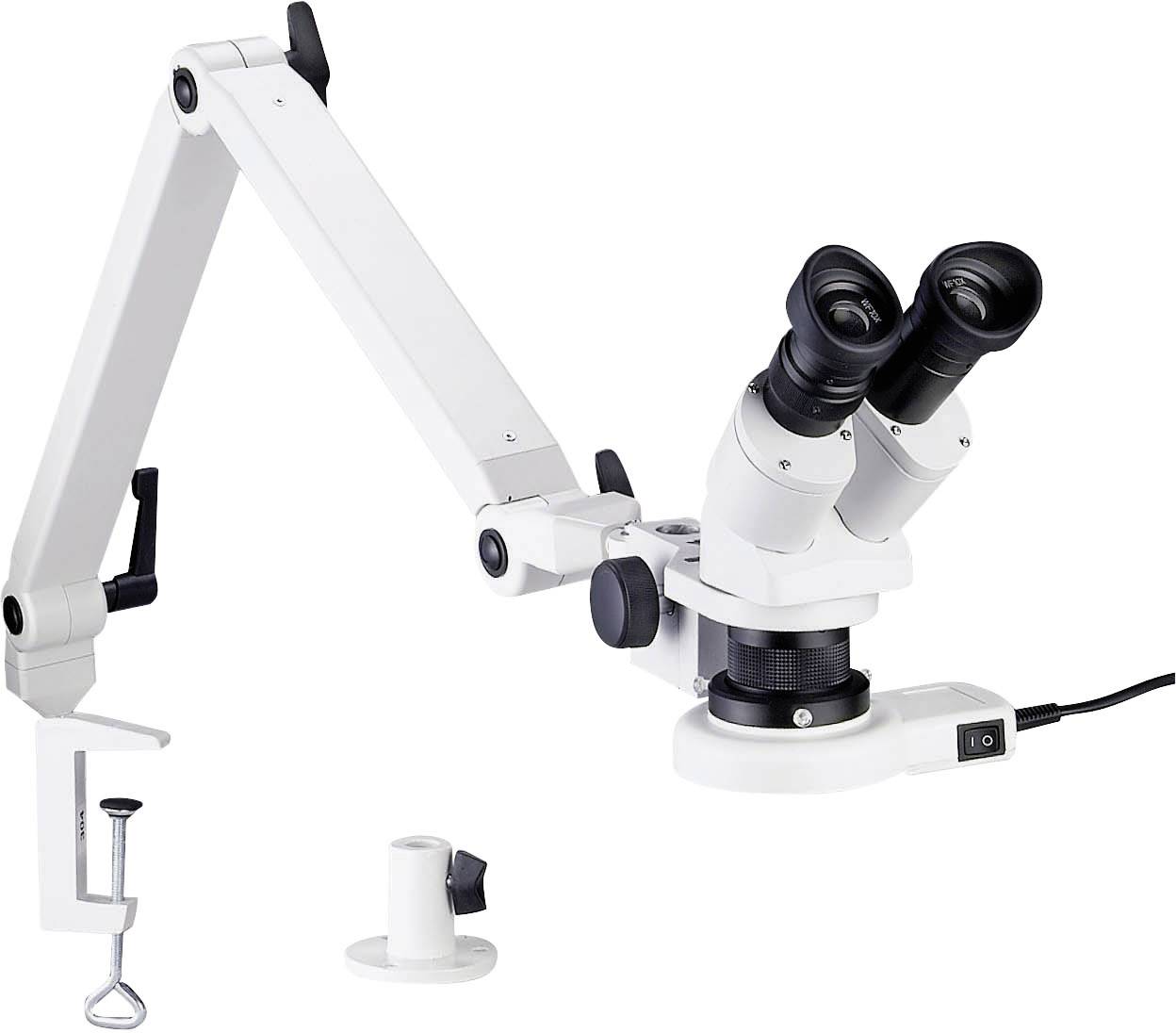 Stereo-Kopf: 45° Schrägeinblick· 360° drehbar · einstellbarer Augenabstand von 54 - 74 mm · Vergrößerung: 10 x / 20 x durch Vorsatzlinsen ausbaufähig bis 40 x · Okulare: Weitfeld 10 x · Okulartubus links mit Dioptrieneinstellung von +- 5 dpt · Okularmuscheln · Montage am Umschlagrevolver · Weiße flimmerfreie LED-Beleuchtung (Lichtfarbe 5800 K) · Ausgangsspannung 18 V / 3,6 W · Arbeitsabstand: 83 mm bei Vergrößerung 10 x / 20 x · Sehfeld: Ø 19 mm bei 10 x, Ø 9,5 mm bei 20 x.