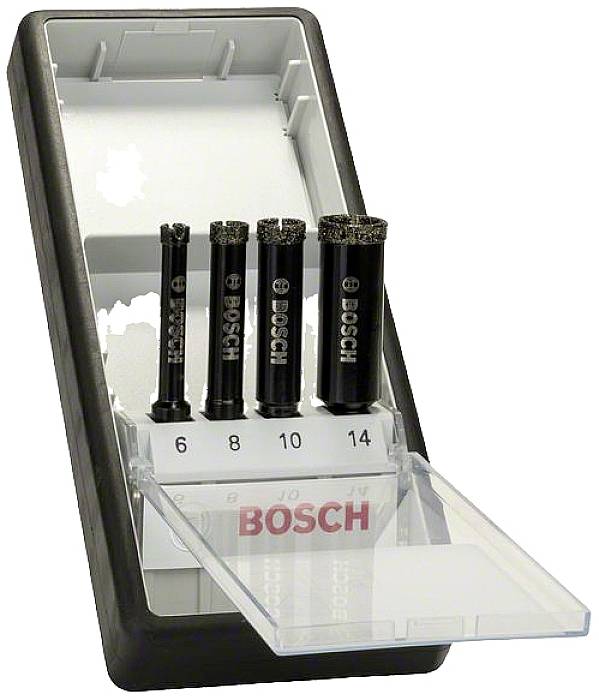Der Diamantnassbohrer erreicht eine lange Lebensdauer beim Bohren von Hartkeramik. Sein hochwertiger Diamantbesatz verleiht dem Bohrer eine hohe Lebensdauer und Verschleißfestigkeit. Das Produkt eignet sich für eine Vielzahl von Materialien – von weichen Wandfliesen bis zu harten Bodenfliesen und Feinsteinzeug Es ist für alle Akkubohrschrauber geeignet. Bohren ohne Schlag Beim Bohren mit diesem Produkt die Wasserkühlung verwenden. Ein robustes und kompaktes Set in einer transparenten Aufbewahrungsbox, die sowohl guten Überblick als auch sichere Lagerung und Transport ermöglicht. Durchmesser mm: 6,0; 8,0; 10,0; 14,0, Arbeitslänge mm: 35; 35; 35; 35, Gesamtlänge mm: 65, Abmessung(en) Set, Länge mm: 156,5, Abmessung(en) Set, Breite mm: 69,5, Abmessung(en) Set, Höhe mm: 23, Abmessung(en) Set mm: 156,5 x 69,5 x 23, Schaftdurchmesser mm: 7,8
