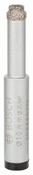 Der Diamantbohrer Easy Dry macht Trockenbohren in Keramik einfach. Der integrierte Kühlmittelspeicher ermöglicht gleichmäßige Leistung und der robust und verschleißfest vakuumgelötete Diamantbesatz erleichtert die Arbeit. Auch ermöglicht die Arbeitstiefe von 33 mm das komfortable Bohren von Fliesen jeder Stärke. Dieses Produkt eignet sich für eine Vielzahl von Materialien – von weichen Wandfliesen bis zu harten Bodenfliesen und feinem Steingut. Es ist für alle Akkubohrschrauber geeignet und besitzt ein Spannfutter der Größe 13 mm. Bohren ohne Schlag Durchmesser (D) mm: 10, Durchmesser (D) Zoll: 25/64, Arbeitslänge (L1) mm: 33