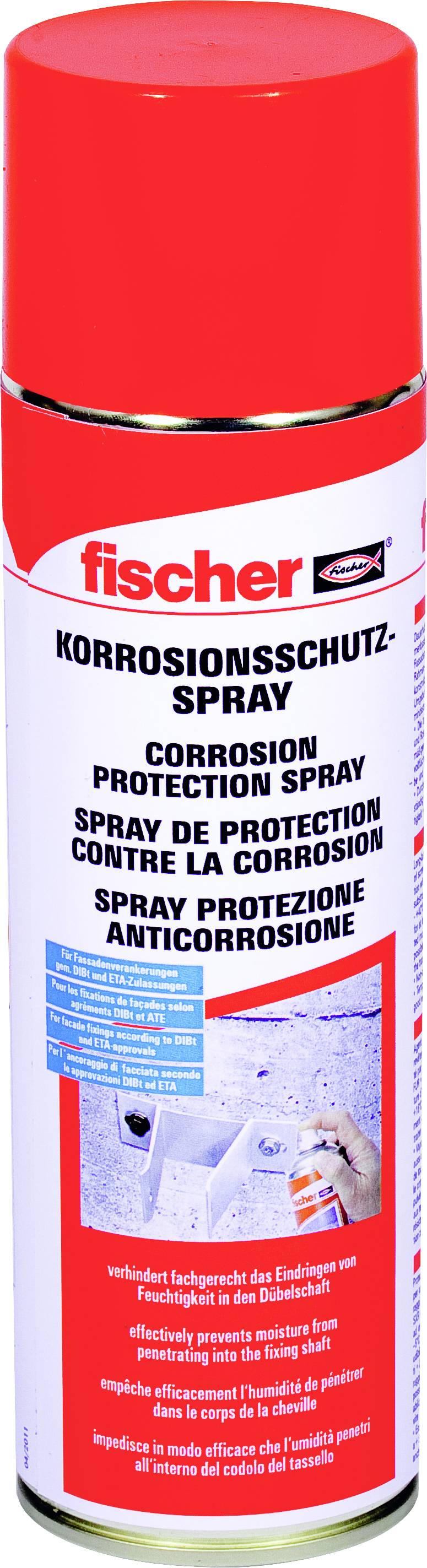 Das fischer Korrosionsschutzspray FTC-CP schützt galvanisch verzinkte Langschaftdübel entsprechend der bauaufsichtlichen Zulassung für Fassadenverankerungen vor Korrosion. Das nicht tropfende Spray wird nach einer intensiven Durchmischung in einem Abstand von 15 bis 20 cm auf den Dübelkopf aufgesprüht. Die Schutzschicht ist bei + 0 °C nach etwa 3 bis 4 Stunden durchgetrocknet. Das fischer Korrosionsschutzspray FTC-CP ist von - 25 °C bis + 80 °C temperaturbeständig sowie salz- und wasserbeständig. Neben Schrauben für die Befestigung von Fassadenunterkonstruktionen ist das Spray ideal zum Schutz von Metallen vor Korrosion.