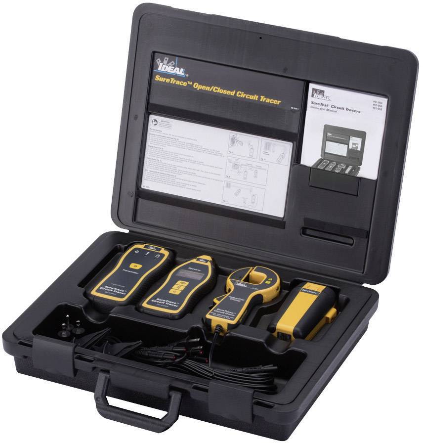 Der SureTrace™ Leitungssucher identifiziert Sicherungen und Schaltern, lokalisiert Unterbrechungen und Kurzschlüsse, verfolgt Leitungsführungen über stromführende und stromlose Leitungen. Der Tester ist ausgestattet mit einer mitdrehender nummerischen Anzeige von 0-99, eines akustischen Signal mit ansteigender Tonhöhe, vier Empfindlichkeitsstufen, Balkenanzeige für Spitzenerkennung sowie der Certain-Circuit™-Leitungserkennung. Des Weiteren besteht das Set aus aus Sender, Empfänger und eine Induktionszange mit Batteriepack für die Einspeisung eines Signals auf das Kabel ohne die Niederspannungsignale auf dem Stromkreis zu beinflussen.