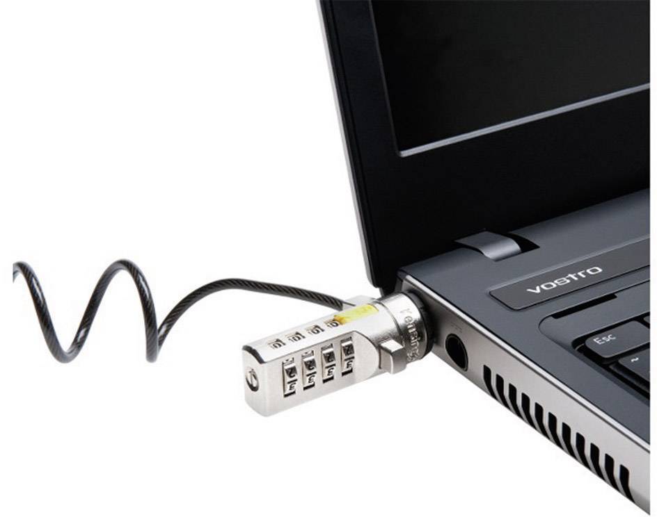 Schützen Sie Laptop und persönliche Daten unterwegs mit dem tragbaren Laptopkombinationsschloss von Kensington. Der Klickmechanismus ermöglicht das Anbringen mit nur einer Hand, und der Kensington T-Bar-Schließkopf sichert das Schloss am Laptop. Das Kabel mit automatischer Aufwicklung lässt sich auf ca. 1,80 m ausziehen, um den Laptop an einem Schreibtisch oder einem anderen, unbeweglichen Objekt zu sichern, es ist jedoch im eingezogenen Zustand nur 7,6 cm lang und damit ideal zum Mitnehmen.