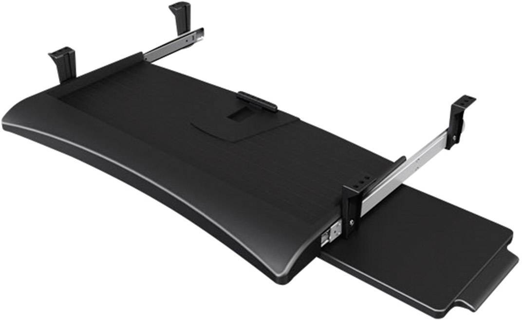 Der Untertisch-Tastaturauszug kann 250mm unter den Schreibtisch geschoben werden. Geeignet für alle Tastaturen bis 520mm Breite. Inklusive Mausablage für maximalen Komfort. Montiert auf Gleitschienen für leichte Handhabung.