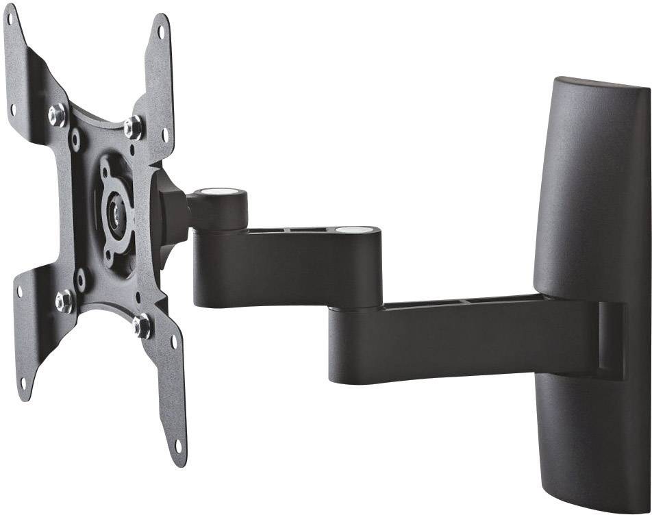 Stufenlose Verstellfunktion, Neigbarkeit um +/- 15 Grad. Die Marken-Halterung ist mit einem um 180° seitlich drehbaren Gelenk zur besseren Justage des Betrachtungswinkels ausgestattet. Diese Wandhalterung ist konzipiert für 15-94 cm (entspricht 15-37 Zoll) Flachbildschirme, sie hält bis zu 15 kg.