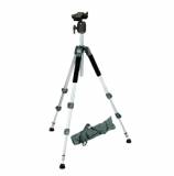 Walimex WAL-6702 + Kopf FT-00 Dreibeinstativ 1/4 Zoll, 3/8 Zoll Arbeitshöhe=60 - 156cm Silber inkl. Tasche, Kugelkopf
