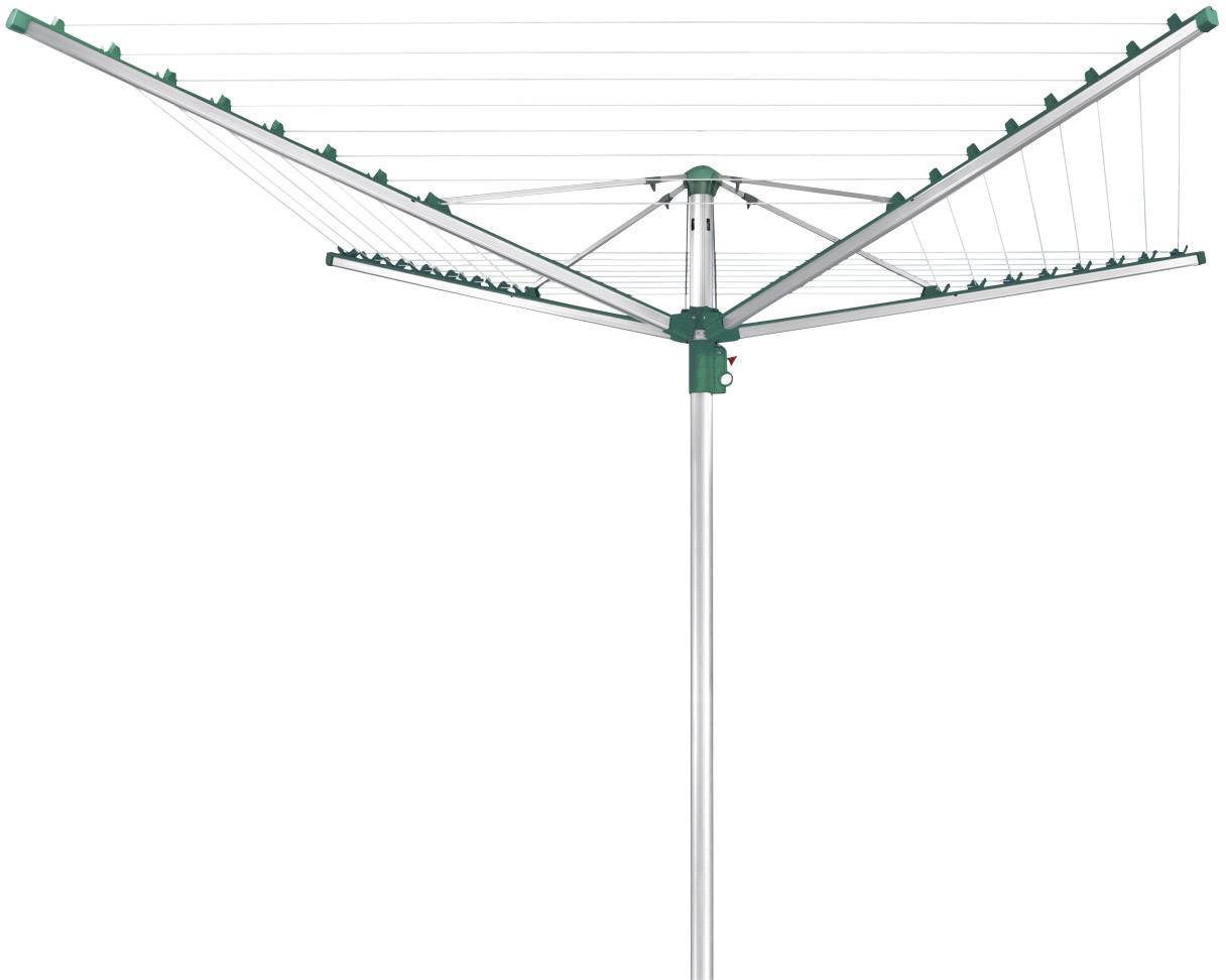 Die Leifheit Linomatic 500 Comfort ist der Premium-Wäscheschirm mit der millionenfach bewährten Leifheit Leinenautomatik: die Leinen verschwinden beim Zusammenklappen in den Tragarmen und warten dort schmutzgeschützt bis zum nächsten Einsatz. Für ein leichtes Öffnen und Schließen sorgt das Easy-Lift-System. Die Aufzugsleine verschwindet automatisch im Inneren der Wäschespinne. Inklusive 4 Haken zur Aufhängung von Kleiderbügeln an den Tragarmen. Die Linomatic 500 Comfort bietet 50 Meter Leinenlänge. Alle eingesetzten Materialien sind witterungs- und UV-beständig.