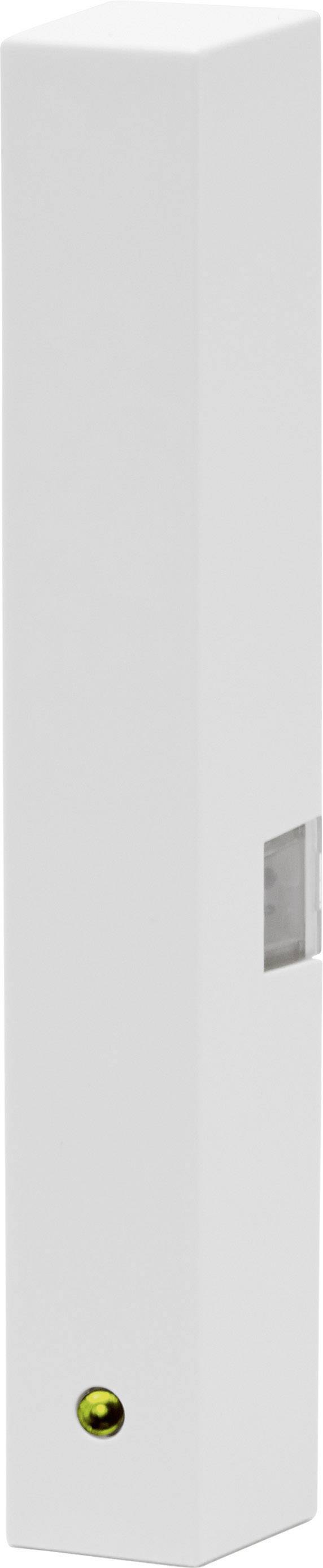 Funk-Tür-/Fensterkontakt zur optischen Erkennung von Tür- bzw. Fensteröffnungen oder -schließungen. Die kompakte Bauform und der integrierte Infrarot-Sensor (Reflexkoppler) machen den Einsatz eines zusätzlichen Magnetkontaktes überflüssig. Einfache Anpassung an Tür- oder Fensterrahmen durch individuellen Einsatz einer weißen oder braunen Abdeckkappe. Einfache und flexible Montage durch mitgelieferte Klebestreifen und Schrauben.