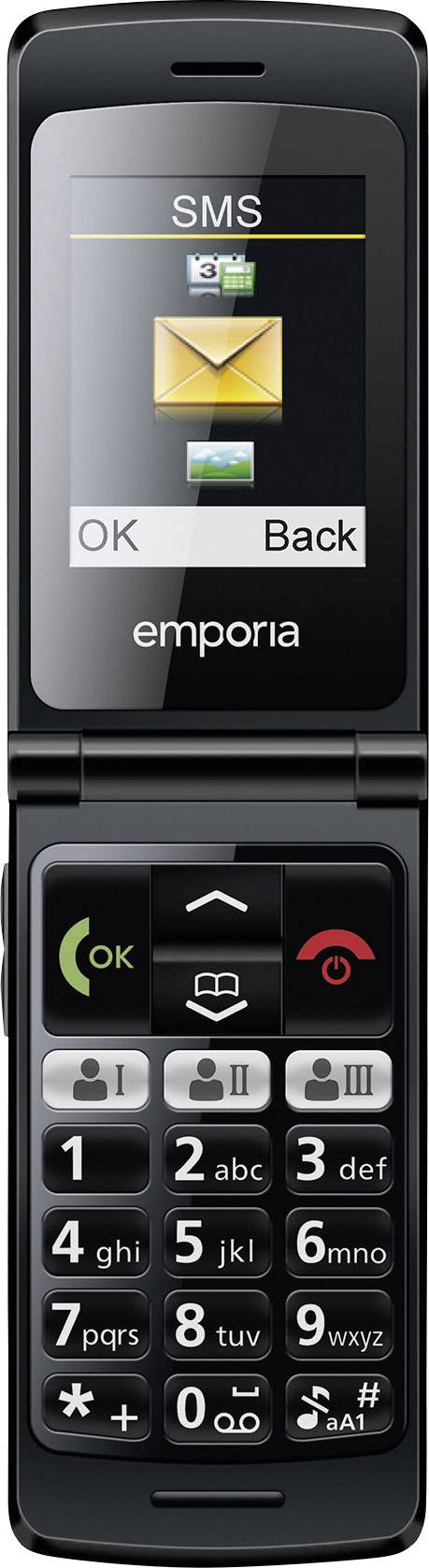 Das Klapphandy emporiaFLIPbasic verbindet Übersicht und Kompaktheit. Im zugeklappten Zustand passt es perfekt in jede Tasche, offen bieten das große Tastenfeld und Farbdisplay die nötige Übersicht. Für zusätzliche Sicherheit sorgt die Notruffunktion. Auf den drei Kurzwahltasten können die beiden wichtigsten Kontakte und die Lieblingsfunktion hinterlegt werden.