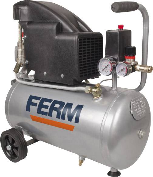 Der CRM1045 ist mit einem 24 Liter Tank ausgestattet, der bis zu 8 bar Arbeitsdruck erzeugen kann. Die Pumpe des FERM-Kompressors ist ölgeschmiert, was eine besonders lange Lebensdauer gewährleistet. Die Räder und der Griff machen es einfach, den Kompressor zu bewegen. An den 2 Manometern können Sie sowohl den Tankdruck als auch den Abgasdruck exakt ablesen. Der Anschluss von Druckluftwerkzeugen erfolgt schnell und einfach mit dem universellen 1/4 Zoll Schnellwechsler.
