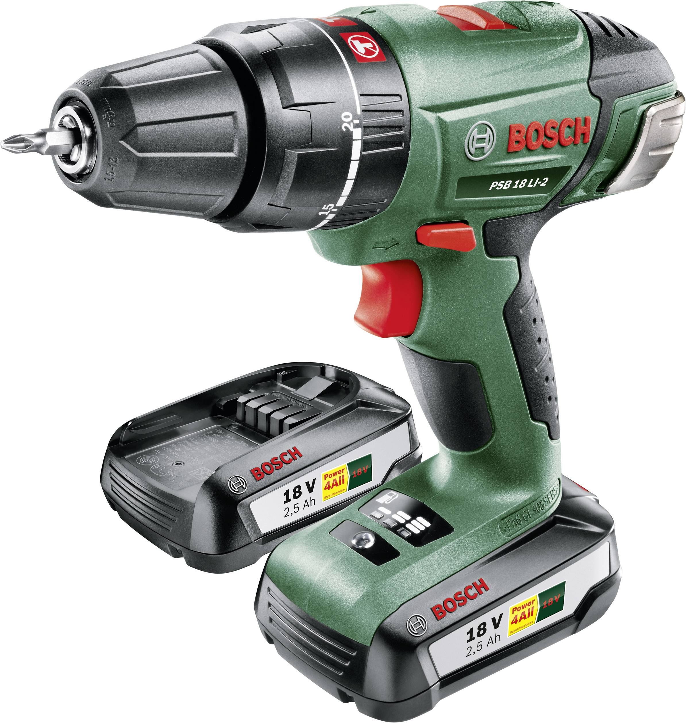Bosch Home and Garden PSB 18 LI-2 2-Gang-Akku-Schlagbohrschrauber inkl. 2. Akku, inkl. Ladegerät, inkl. Koffer