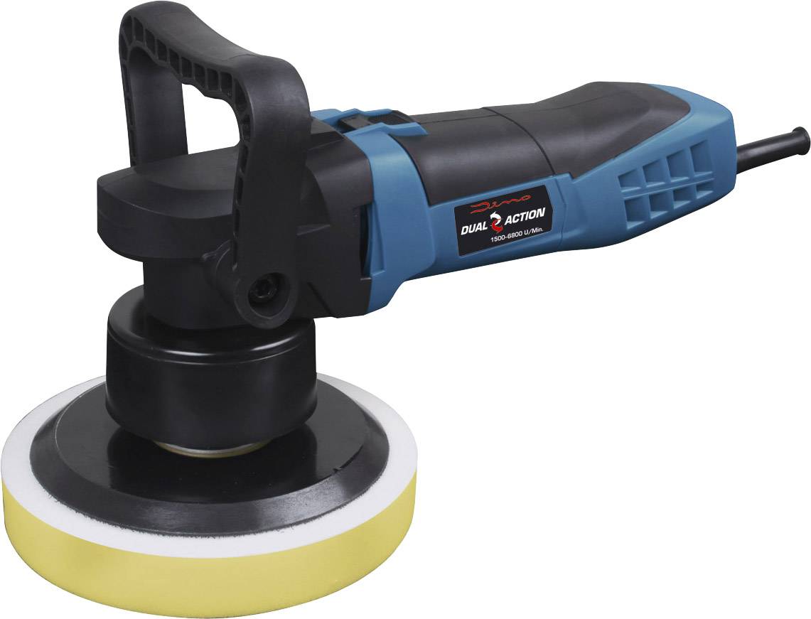Die Dual-Action-Technik mit ihren exzentrischen Bewegungen ist für alle Lackoberflächen geeignet. Diese Poliertechnik ist ideal für dunkle Lacke, da die Maschine ein hologrammfreies Polieren ermöglicht. Profis und unerfahrene Benutzer sind mit dieser Poliermaschine für ein perfektes Ergebnis gerüstet. Die über einen weiten Bereich regelbare Drehzahl ermöglicht auch Ungeübten – vom Start weg – sehr gute Polierergebnisse zu erzielen. Der breite Drehzahlbereich lässt Polierarbeiten schon ab 1500 U/min zu. Je niedriger die Hubgeschwindigkeit desto besser lässt sich das Pflegemittel auftragen. Die Motor-Drehzahl ist stufenlos, der Polierhub beträgt 8mm. Der wechselbare Polierteller mit 150 mm Durchmesser ist geeignet für Polierschwämme von 150 bis 180 mm Durchmesser. Im Lieferumfang sind zwei Polierschwämme mit 180 mm Durchmesser (weich & medium) enthalten. Das gelbe Polierpad ist geeignet zum Auftragen von Polituren und mit dem schwarzen weichen Polierschwamm können Polituren abgenommen oder Lackoberflächen mit Wachs versiegelt werden. Die Softstartkontrollfunktion vermeidet Verlust der Pflegemittel und sorgt für eine kontrollierte Beschleunigung. Eine extrem niedrige Wärmeentwicklung und geringe Belastung der Lackoberfläche sind die Vorteile. Die Ergonomie ist geeignet für Links- und Rechtshänder. Der komfortable Haltegriff ist individuell einstellbar. Die handliche Gehäusegröße erleichtert die Handhabung.