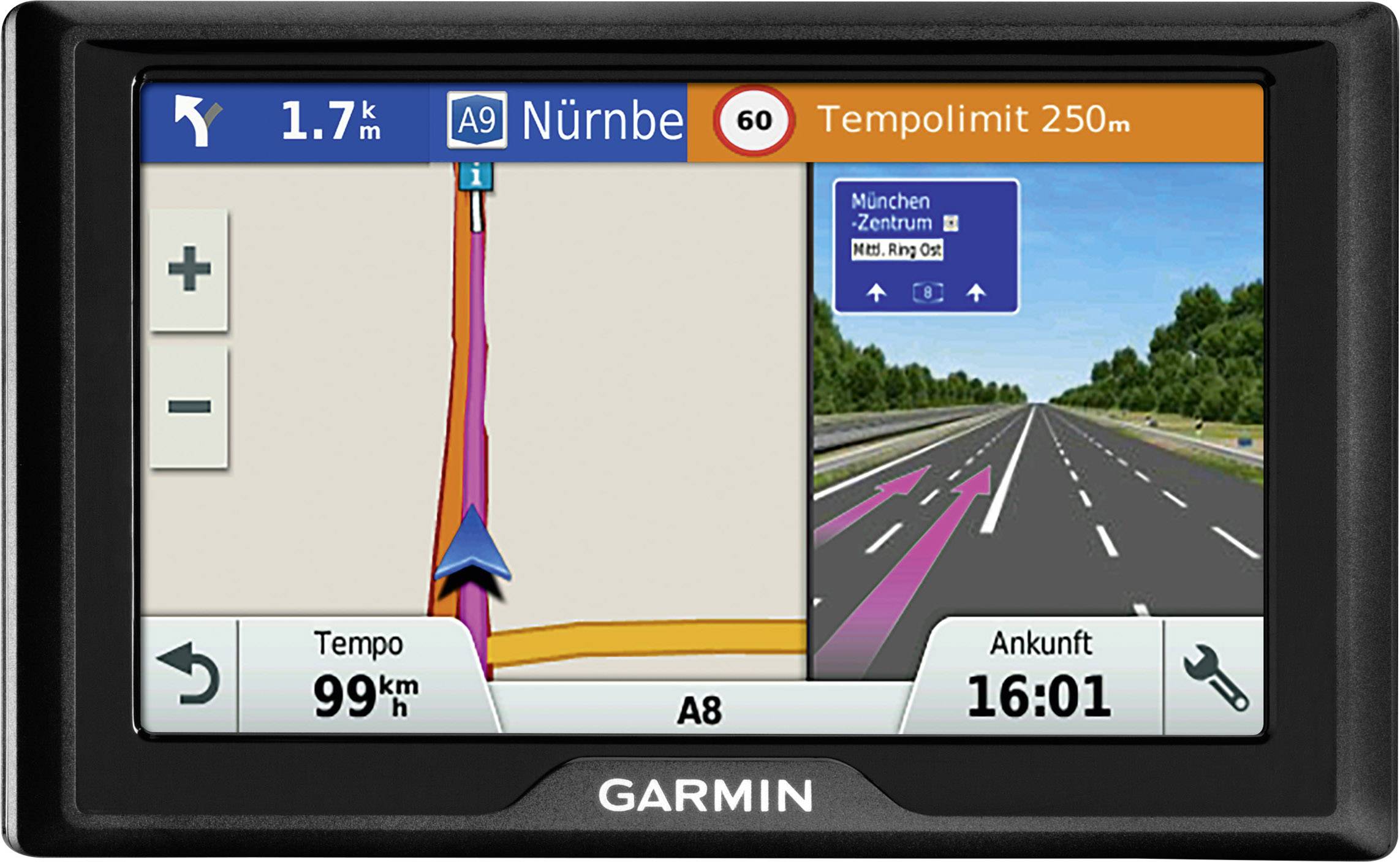 Hilfreiche Alarme für Vielfahrer Das Garmin Drive 40-GPS-Navi bietet Alarme für Fahrer, um die Sicherheit beim Fahren zu erhöhen. Erhalten Sie u. a. Warnungen für scharfe Kurven, Geschwindigkeitsänderungen, Bahnübergänge und Wildwechsel. Wenn Sie auf einer Einbahnstraße in die falsche Richtung fahren oder sich in der Nähe von Schulbereichen befinden, teilt Ihnen das Garmin Drive 40 dies ebenfalls mit. Bei längeren Fahrten schlägt der Müdigkeitswarner4 Pausenzeiten und mögliche Rastplätze vor, nachdem Sie stundenlang gefahren sind. Die Funktion für POIs entlang der Route zeigt Ihnen POIs und wichtige Punkte wie z.B. Restaurants oder Geschäfte an. Dazu müssen Sie nicht einmal die Kartenseite verlassen.
