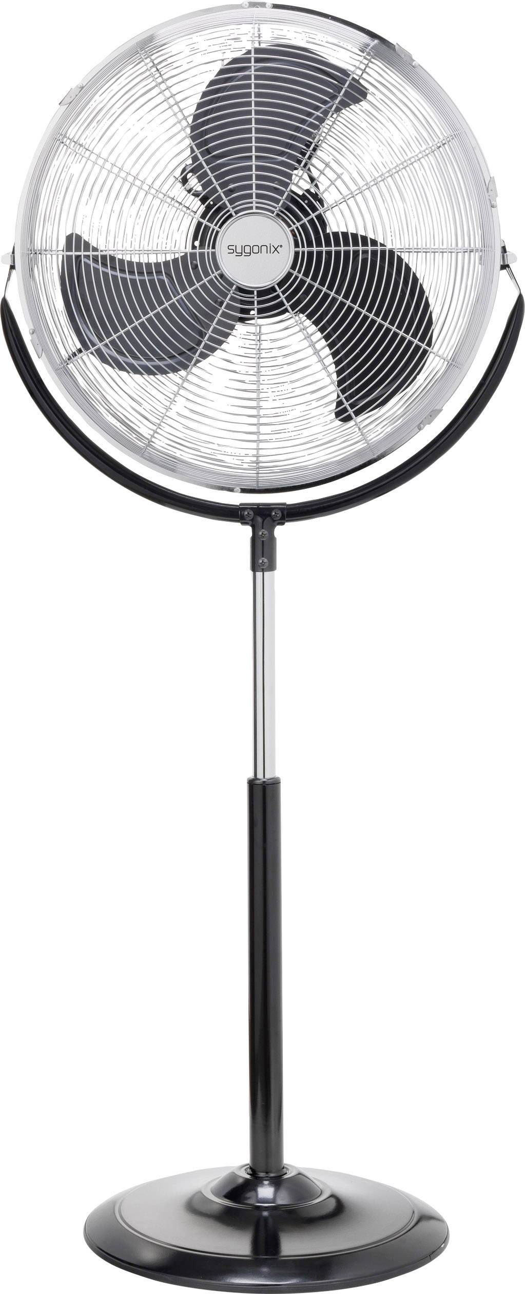 Ganz aus Metall! Der Sygonix-Standventilator wird zu Ihrem Schmuckstück in der Wohnung oder des Büros. Er sorgt nicht nur für die nötige Erfrischung, er stellt auch einen echten Blickfang dar. Stärke spielt in heißen Tagen ein wichtige Rolle, die mit 6000m³/h Luftdurchsatz garantiert ist. Zu dem ist er zwischen 111 und 130cm stufenlos höhenverstellbar. Der massive Standfuß sorgt für einen stabilen Stand.