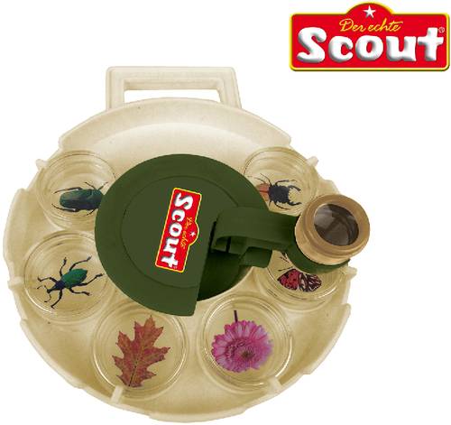 SCOUT Lupenrad, ca. 19 x 3 x 16,5 cm, ausklapp- und drehbare Lupe mit x-facher Vergrößerung, 6 herausnehmbare Objektbehälter 4 x 1,6 cm, mit Tragegriff