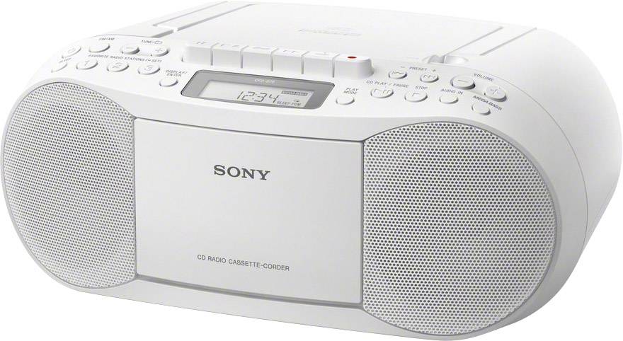 CFD-S70 Boombox: Toller Sound trifft auf kompaktes Design. Dieses kompakte Gerät bietet MW/UKW-Radio, Kassetten- und CD-Player mit MP3-Wiedergabe. Genießen Sie Mega Bass und legen Sie bis zu 30 Radiosender fest – davon drei Favoriten mit Sofortzugriff. Stellen Sie die Abschaltautomatik so ein, dass das Gerät ganz nach Ihren Bedürfnissen automatisch abgeschaltet wird.