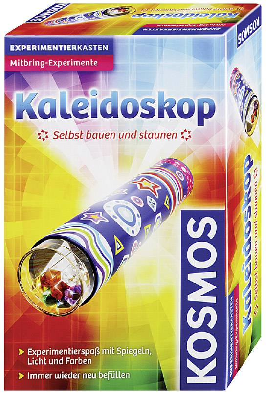 Mit diesem Set können Kinder ihr eigenes Kaleidoskop bauen. Der Kreativität sind keine Grenzen gesetzt, denn es kann individuell gestaltet und immer wieder neu befüllt werden. Für ein erstes Staunen ist Füllmaterial bereits beigelegt. Spannende Versuche zu Licht, Farben und Formen lassen physikalisches Wissen spielerisch erfahren. Ab 6 Jahren.