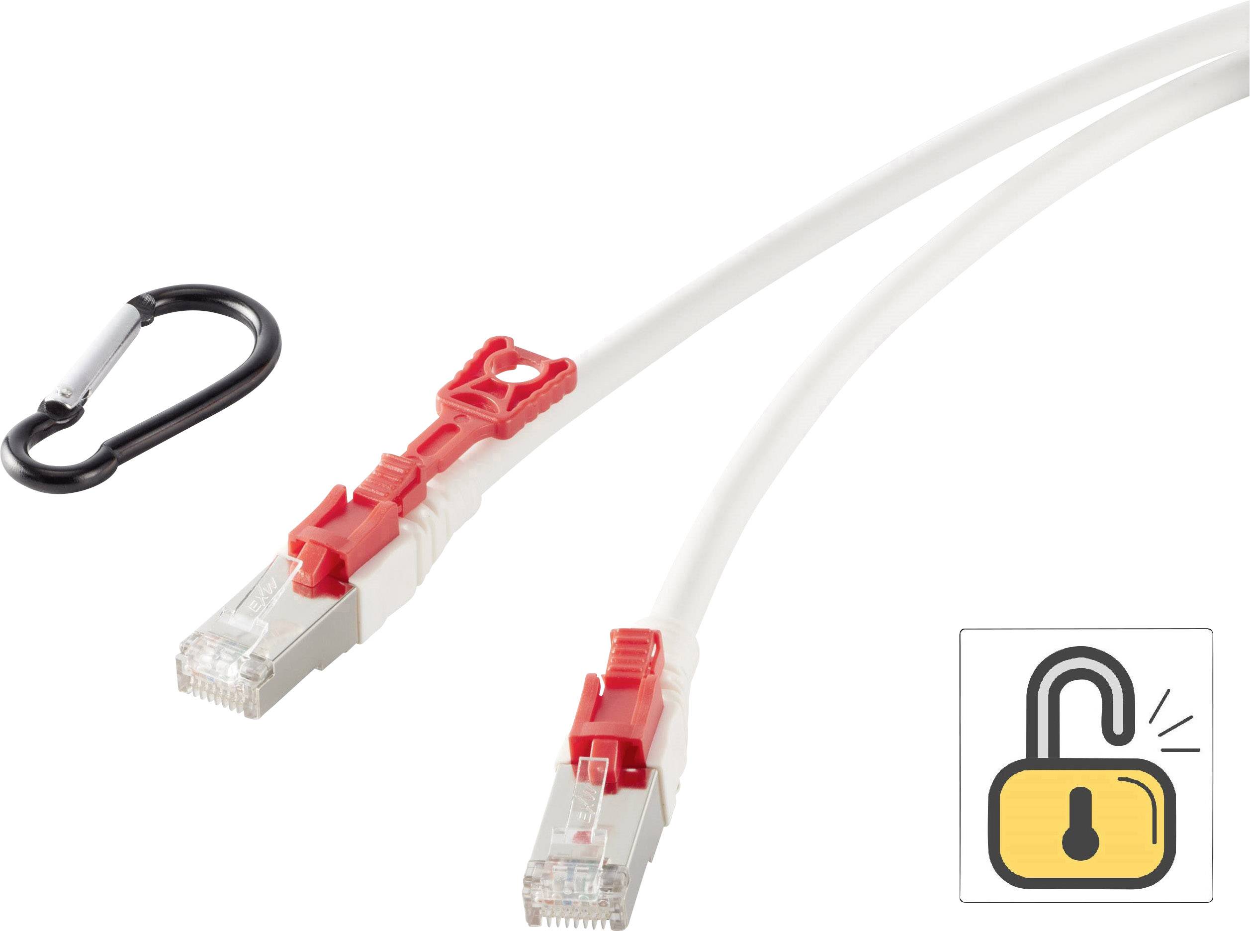 Renkforce RF-4393515 RJ45 Netzwerkkabel, Patchkabel CAT 6a S/FTP 1.00m Weiß verriegelbar, mit Rastnasenschutz, Halogenfrei