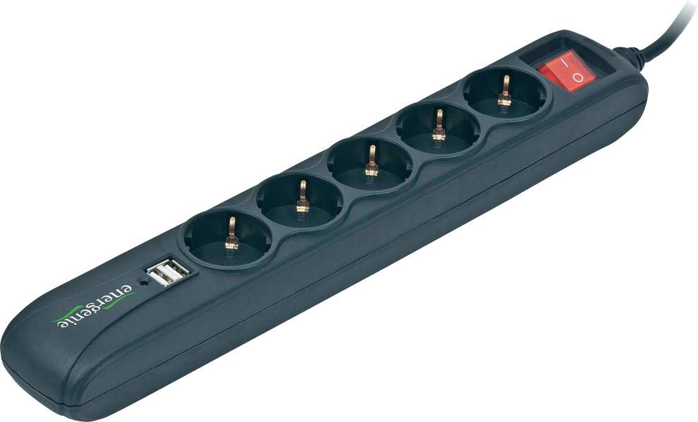 Gembird SPG5-U2-5 Steckdosenleiste mit Schalter 5fach Schwarz Schutzkontakt 1St.