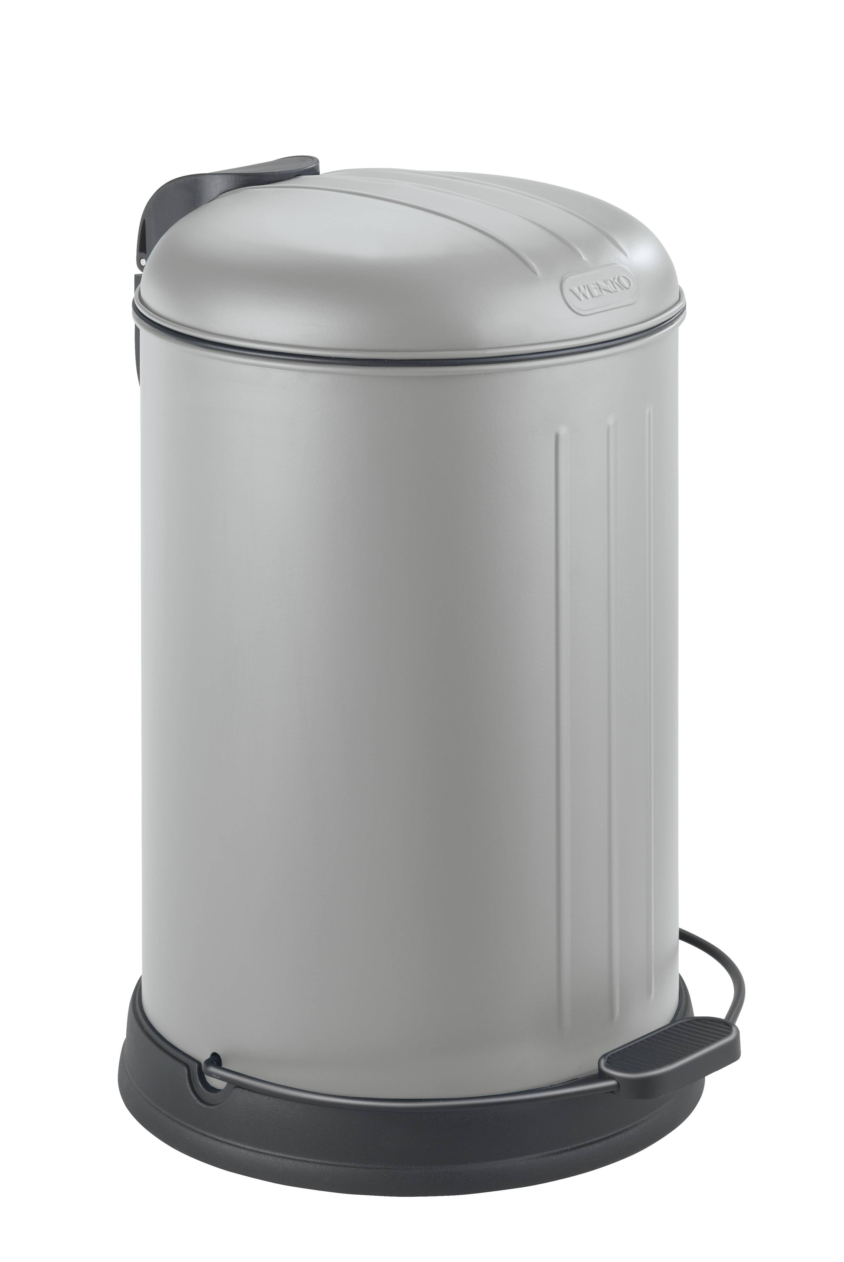 Der Treteimer aus der Serie Lagun ist aus grau-lackiertem Stahl hergestellt und mit der WENKO Easy-Close Absenkautomatik ausgestattet. Diese verhindert das laute Aufknallen des Deckels und lässt ihn sanft und leise schließen.