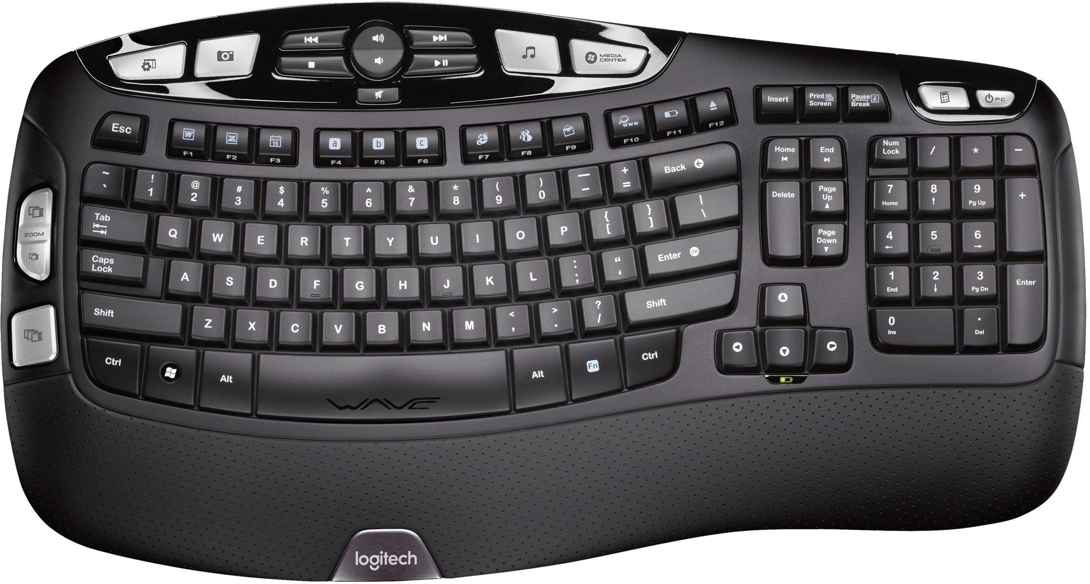 Logitech K350 Funk Tastatur Deutsch, QWERTZ, Windows® Schwarz Ergonomisch, Handballenauflage