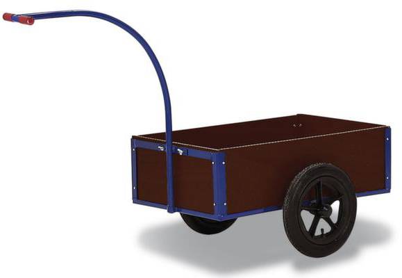 Handkarre - Traglast 150 kg Aufbauten: - Stabiler Winkelstahlrahmen mit Pulverbeschichtung - Geschlossener Kasten aus Siebdruckplatte. Ladefläche: - Ladefläche aus Siebdruckplatte. Bereifung: - Räder mit Luft-Bereifung.