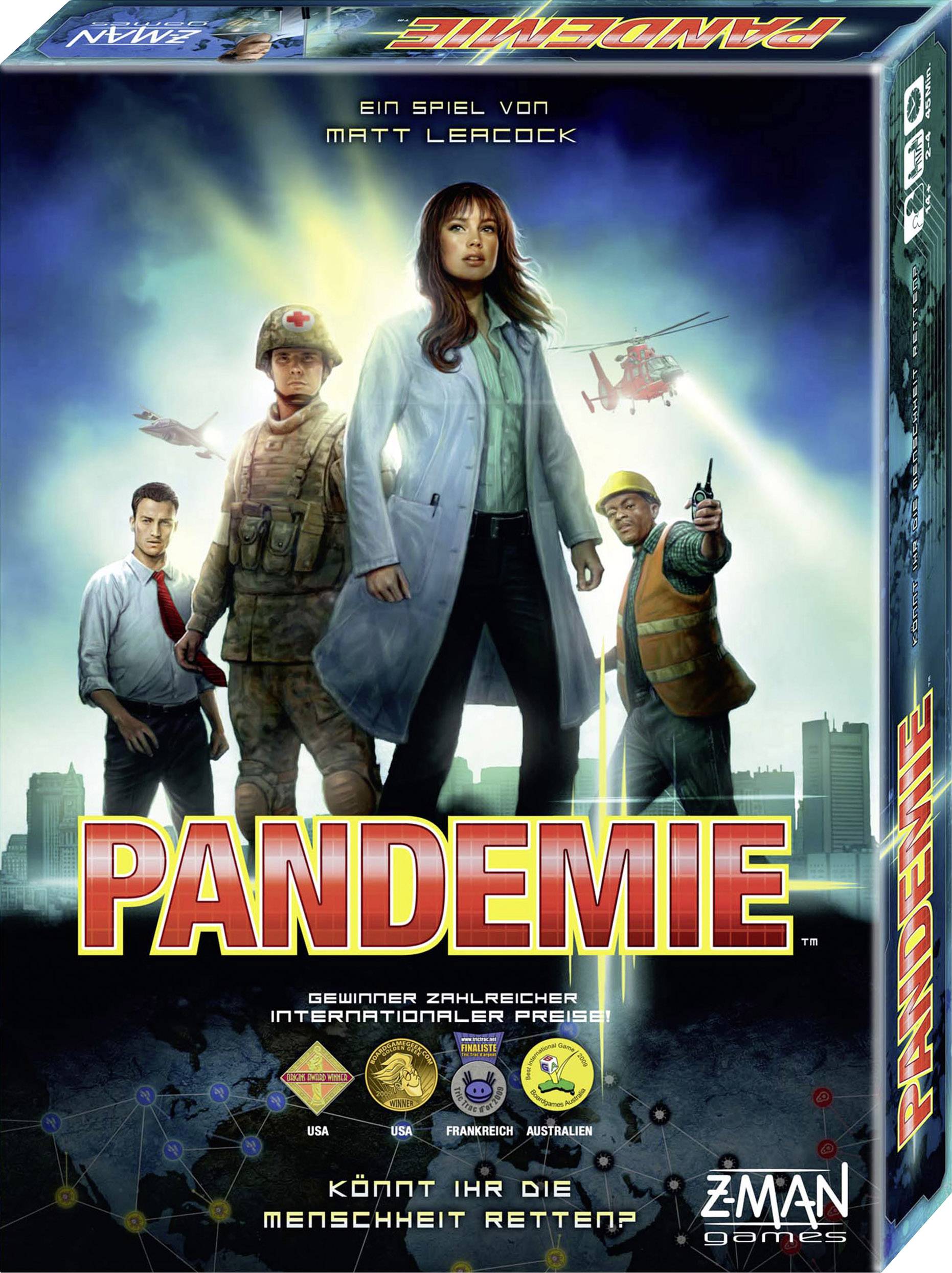 Ebola, HIV oder Marburg-Virus, inzwischen wird unsere Welt von unendlich vielen diversifizierten Viren bedroht. Bei rasender Verbreitung dieser Erreger, kommt es schnell zu Epidemien und final zu einer weltbedrohenden Pandemie. Doch die Spieler haben die Chance, die Welt zu retten! Im kooperativen Spiel Pandemie sind die Spieler als hoch qualifizierte Angehörige eines Seuchenbekämpfungsteams tätig. Sie reisen um die Welt und arbeiten zusammen, um die Infektionsgefahr einzudämmen und zugleich die Grundlagen für die Erforschung der Gegenmittel zu legen. Als Arzt, Forscherin oder Logistiker setzten die Spieler ihre jeweiligen Stärken ein, um die Seuchen zu besiegen, bevor diese die Welt in die Knie zwingen können. Die Zeit drängt, da Ausbrüche und Epidemien die Verbreitung der Plage beschleunigen. Jedem Spieler kommt innerhalb des Teams eine besondere Rolle zu, deren einzigartige Fähigkeiten bei durchdachtem Einsatz die Chancen des Teams deutlich verbessern. Ziel des Spiels ist es, die Menschheit zu retten, indem Sie die Gegenmittel gegen vier tödliche Seuchen entdecken, welche die Erde in den Abgrund zu reißen drohen. Ist das Team der Spieler nicht in der Lage, die Seuchen so lange einzudämmen, bis die benötigten Gegenmittel entdeckt wurden, kann die Erde ihrer Ausbreitung nicht standhalten, und die Spieler verlieren gegen das Spiel. Können die Spieler rechtzeitig die Gegenmittel entwickeln? Das Schicksal der Menschheit liegt in ihren Händen!