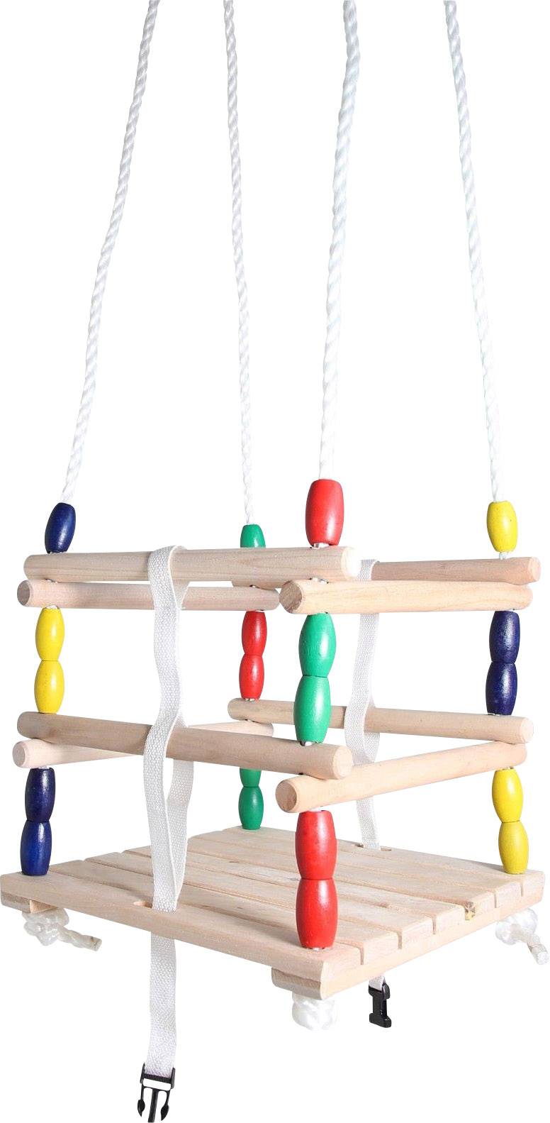 Outdoor active Gitterschaukel aus Wachholderholz. Massiv und wetterbeständig. Ausgestattet ist die Schaukel mit starken Kunststoffseilen, Seillänge bis zu 180cm. Sitzfläche: 30x30cm. Maximale Tragkraft 60kg. Für Kinder ab 1 Jahr.