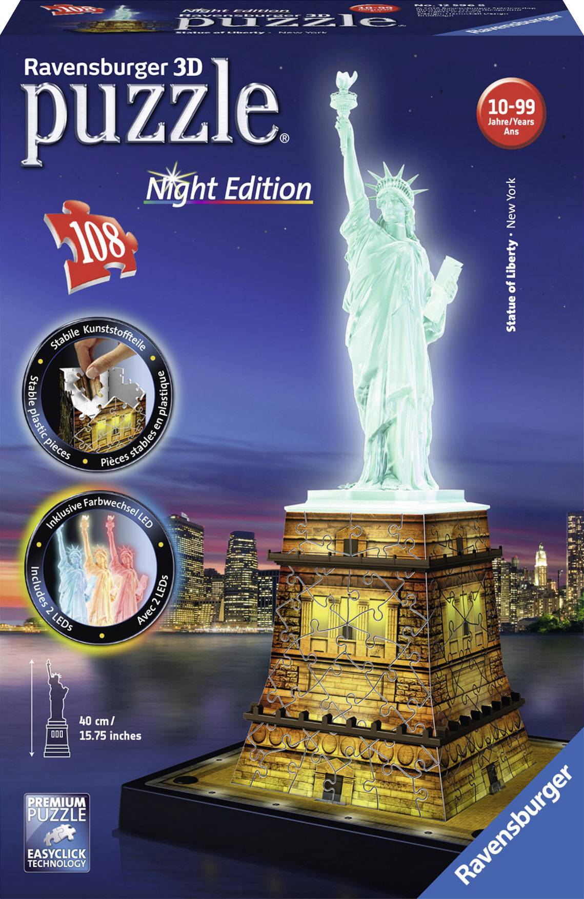 04005556125968, 4005556125968, Ravensburger, 12596, Freiheitsstatue bei Nacht, 3d puzzle